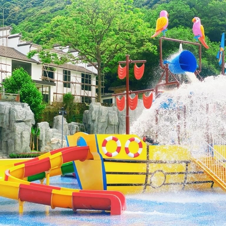 Features: Water slide, boat, climbing wall